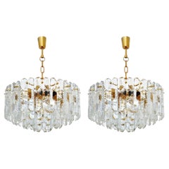 Coppia di lampadari a sospensione Kalmar Lighting 'Palazzo', vetro ottone dorato, anni '70