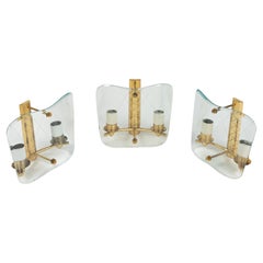 Set di tre appliques in ottone e vetro curvato nello stile di Pietro Chiesa per Fontana Arte.