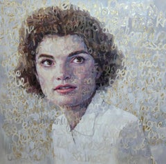 Olio su tela di Jackie O con foglia d'oro 49 x 51