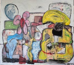 Acrilico su legno Assemblaggio intitolato: "A.B.C.X" multi Giallo