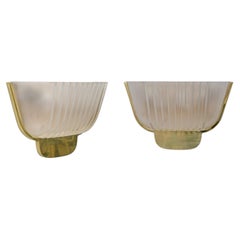 An elegant pair of Art Deco wall lamps attributed to Archimede Seguso, crafted from ribbed satin-finished Murano glass with brass fixtures, Italy, 1940s.