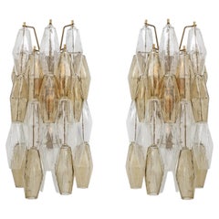 Pair of Mid-Century Italian Murano Glass Poliedri Sconces in Amber and Clear