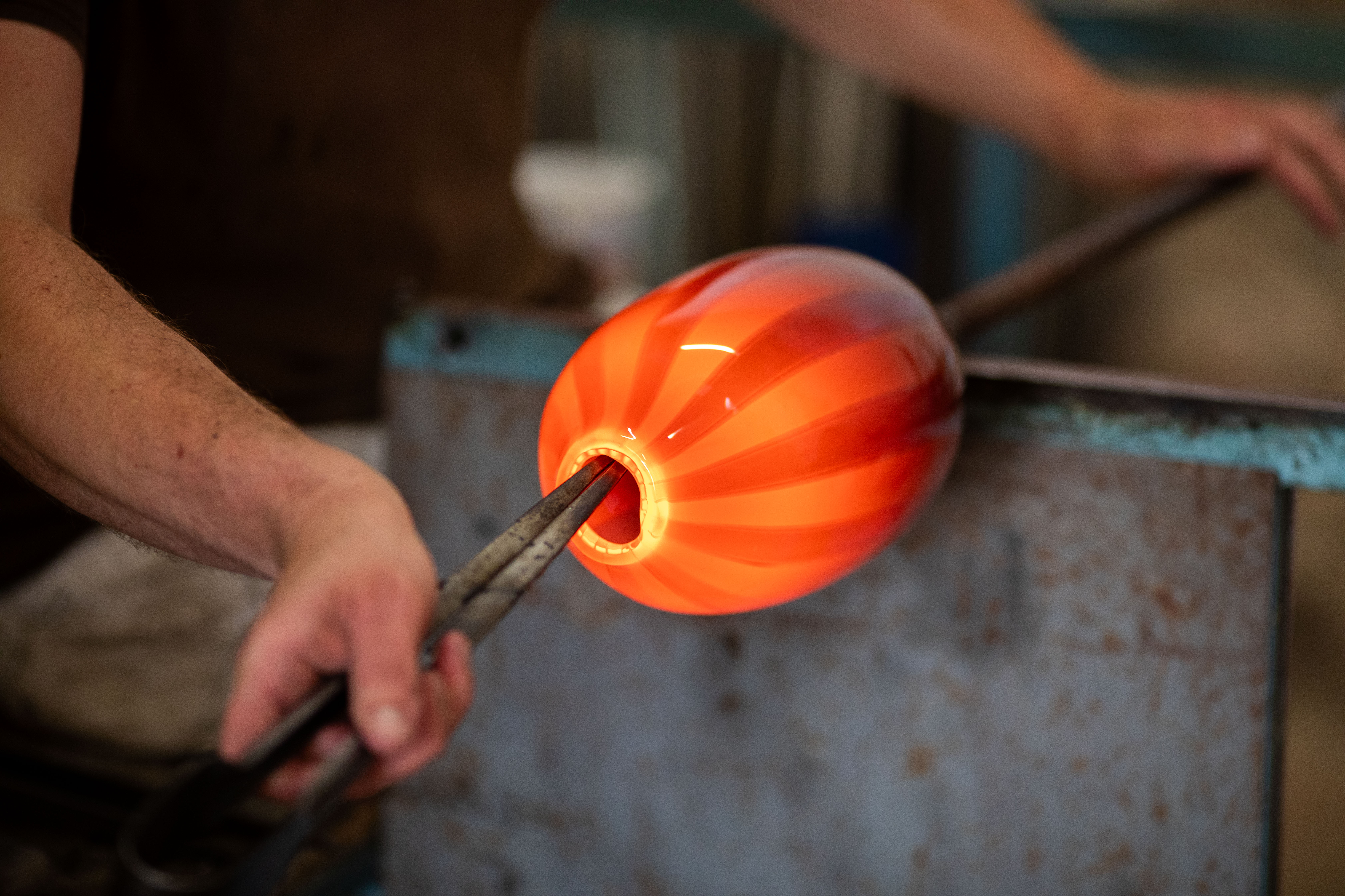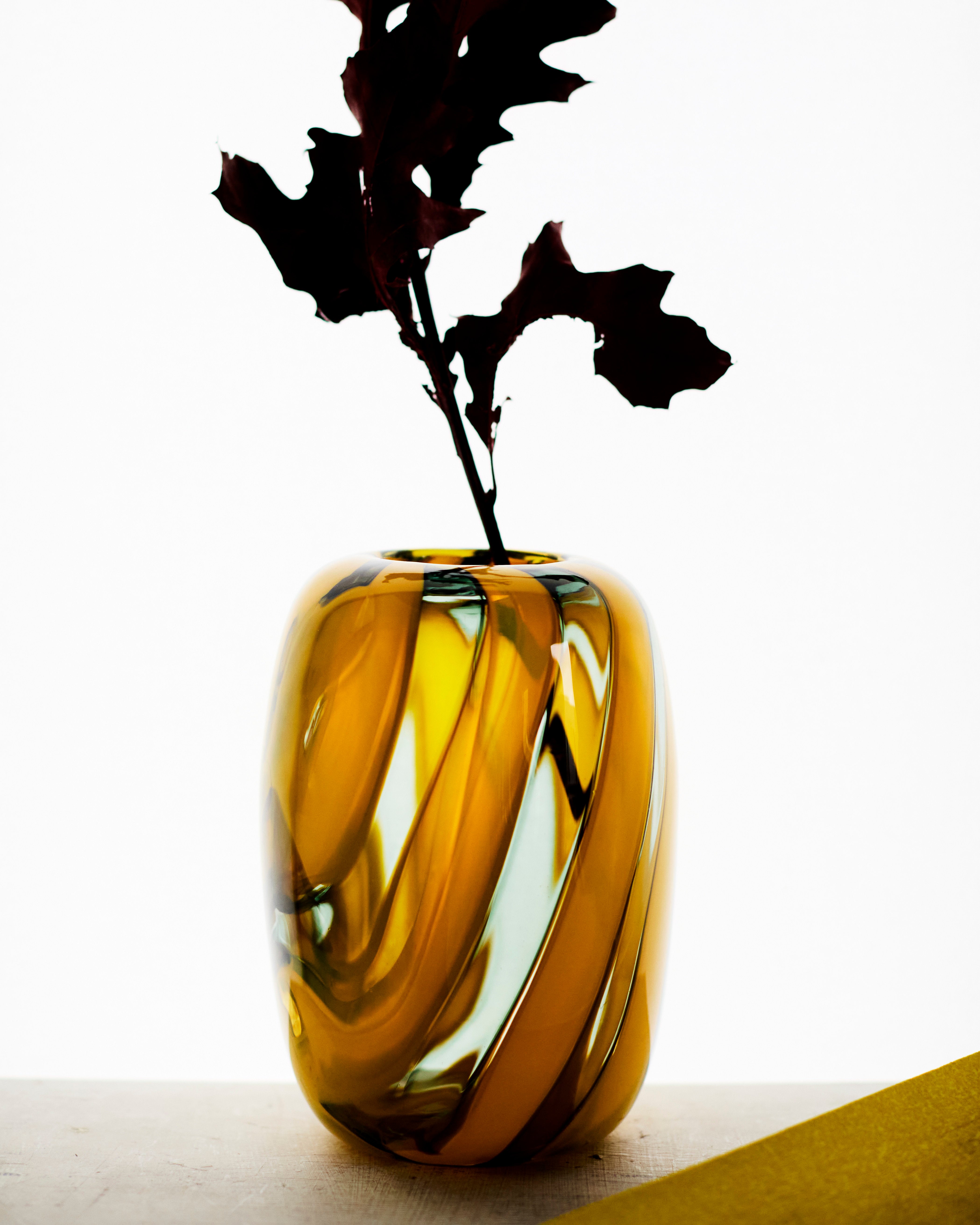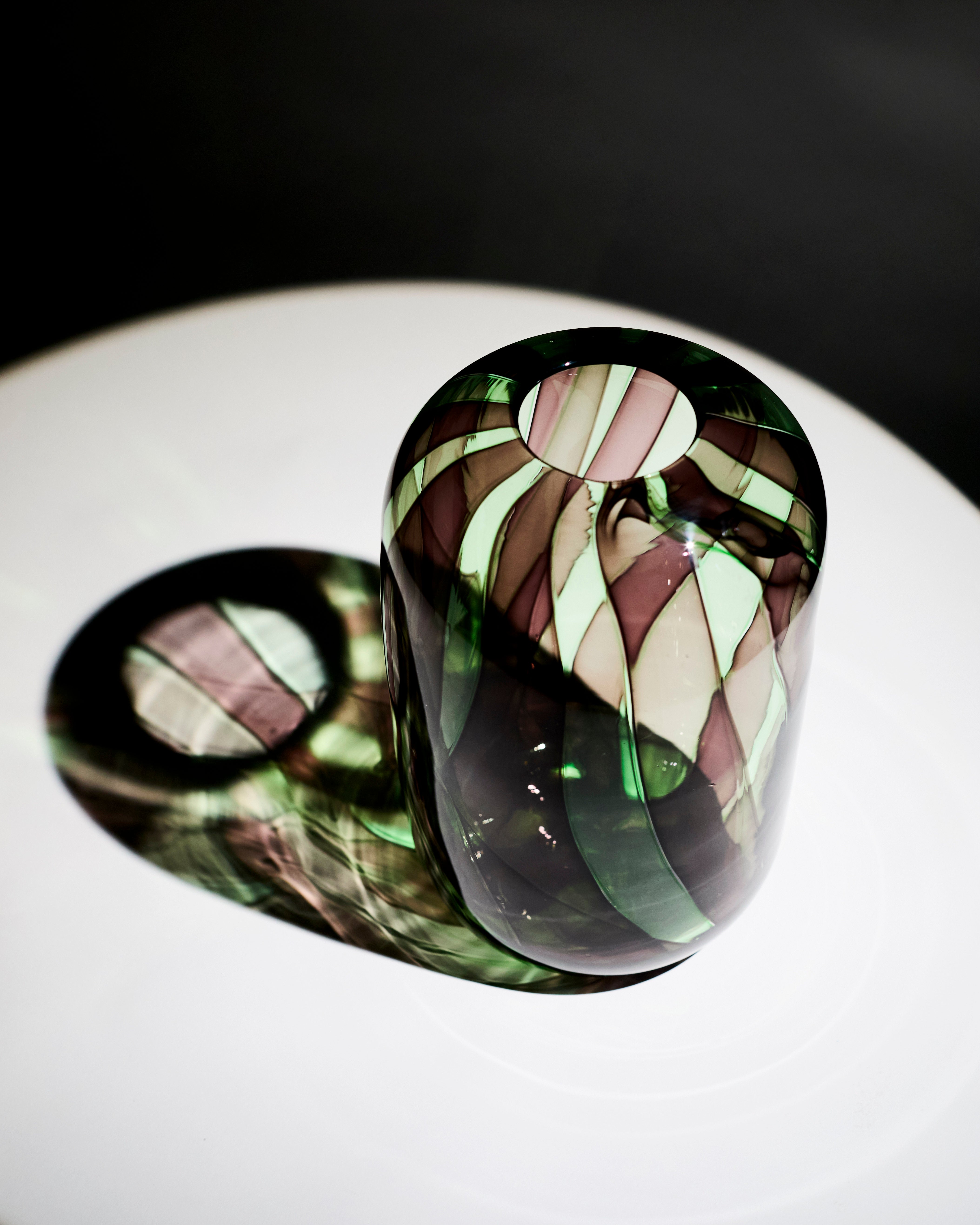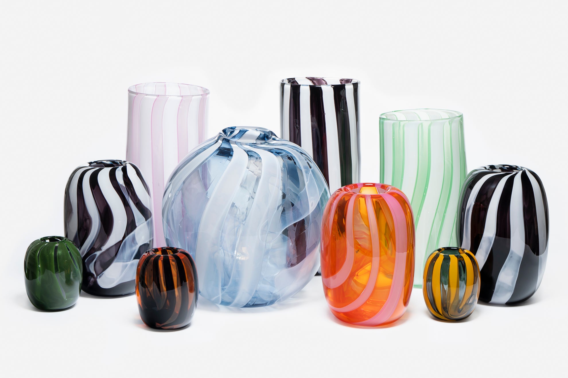 Voluminosi nella forma, iridescenti nei colori e con motivi meticolosamente realizzati, i vasi Moonarij soffiati e scolpiti a mano si distinguono come ipnotici oggetti di bellezza.