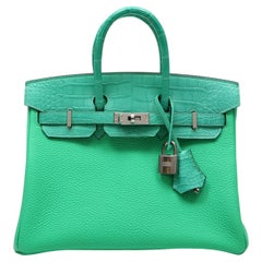 Hermès Vert Comics Togo e Alligatore Touch Birkin 25 Hardware Palladium