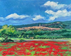 "Gloria di primavera sotto San Saturnino" Olio impressionista contemporaneo della Provenza