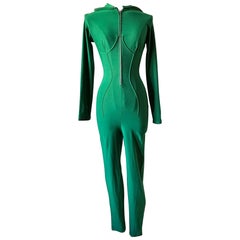 L'iconica tuta con cappuccio di Gaultier Junior anni '90 di colore verde con cuciture a corsetto
