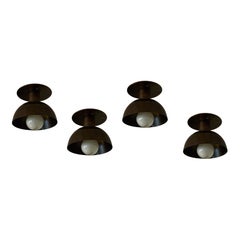 Set di quattro faretti marrone opaco 'Dot' da installare sia a parete che a soffitto. Realizzato e assemblato a mano con componenti in ottone e acciaio. Paralume in metallo laccato b...