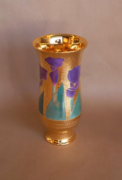 Vaso originale in porcellana, oro e lustro persiano dell'artista Carolyn Barlock.