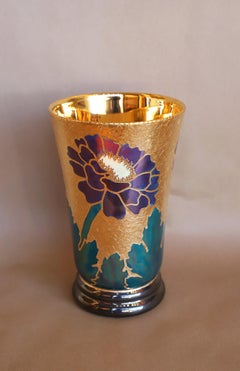 Bicchieri originali in porcellana, oro e lustro persiano dell'artista Carolyn Barlock. Set di 6 pezzi.