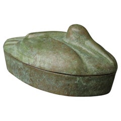 Un vaso in bronzo giapponese finemente lavorato dal noto artista metallurgico Hiroharu Hiramatsu, che si distingue per la sua forma scultorea a zucca e per i contorni verticali morbi...