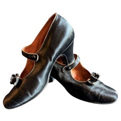 Coppia di décolleté Charles IX in raso nero - Francia Circa 1920-1930