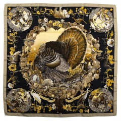 Sciarpa in seta nera di Hermès con animali selvatici del Texas
