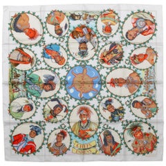 Sciarpa Chefs Indiens bianca di Hermès in edizione limitata realizzata dall'ambito designer Kermit Oliver. Nuovo nella scatola.