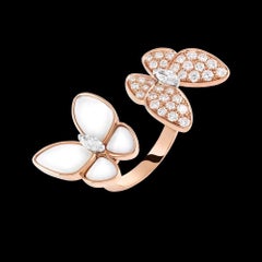 Questo squisito anello a due dita di Van Cleef & Arpels presenta due farfalle in direzioni opposte, realizzate in oro rosa 18k. Una farfal...