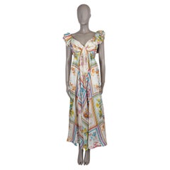 Maxi abito Chanel 98P con stampa a libellula in chiffon di seta e sovrapposizione di trasparenze con bottoni CC