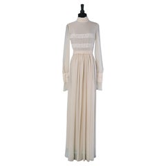 Abito da sera vintage anni '60 in organza e rayon color crema UK 8 US 4