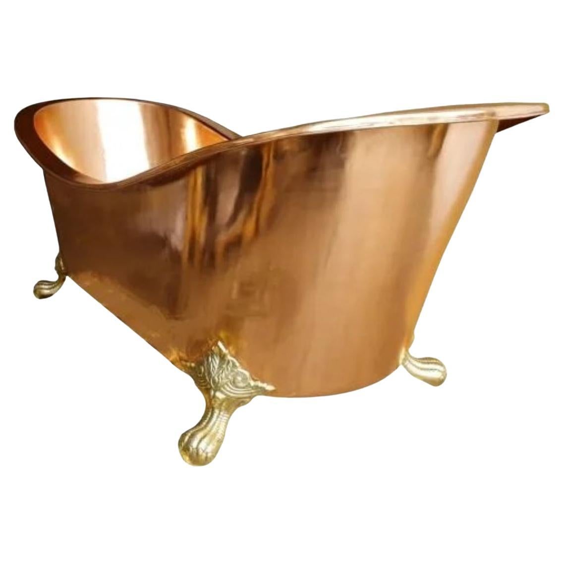 Vasca da bagno in rame con bordo a volute, realizzata come da tradizione artigianale,
