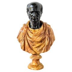 Questo grande e imponente busto, realizzato in gesso e poi collocato su una base in pietra scolpita, è davvero un grande oggetto decorativo.