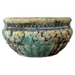 Jardiniere indiano in metallo patinato della metà del XX secolo