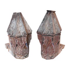 Grande lanterna a candela marocchina vintage da esterno in metallo.