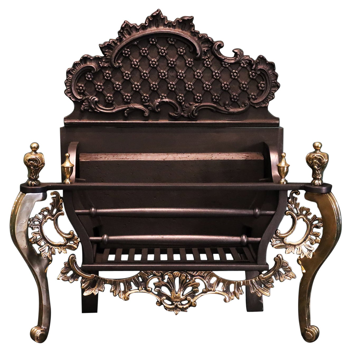 Un cesto da camino rococò in ferro e ottone in stile Chippendale