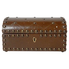 Scatola armoriale grande in pelle italiana con coperchio a cupola