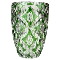 Vaso di cristallo verde di Val Saint Lambert Cut to Clear Belgio 1950s