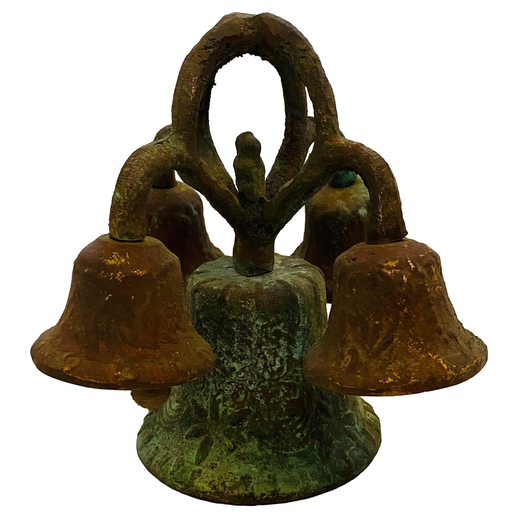 Bellissima campana a vela in stile missione. Grande patina e grande look. Quattro campane singole sono sospese su quella principale. Ottimo come oggetto d'arredo o appeso nello sp...