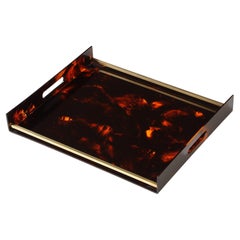 Vassoio da portata del Medioevo in vetro e ottone in stile Fontana Arte, Italia anni '50