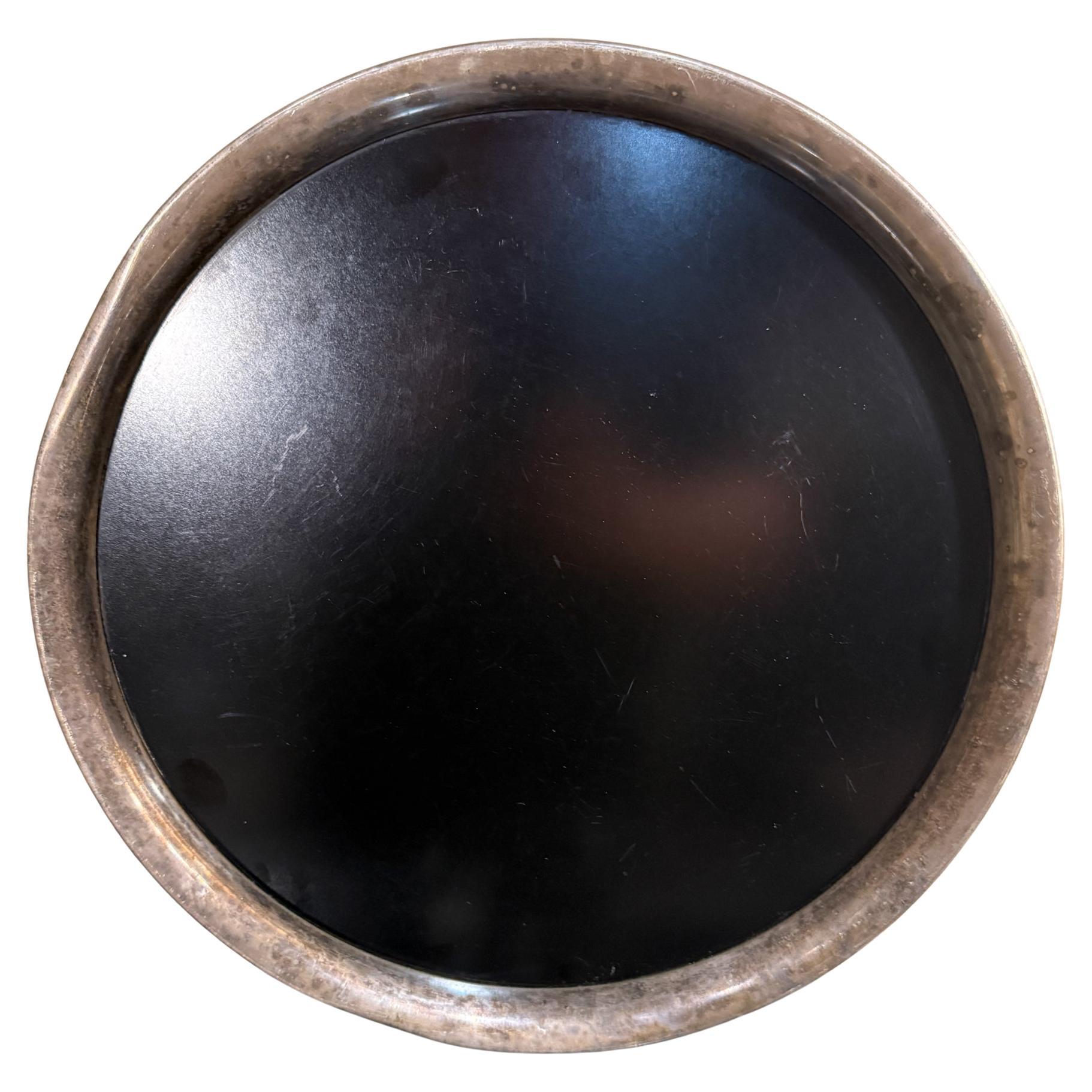 Vassoio di servizio rotondo Gorham del 1960 in formica nera argentata
