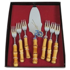 Disegnate da Jens Quistgaard per Dansk Designs negli anni '60, le iconiche posate Fjord erano realizzate con un inserto al centro dei manici in teak e piani in acciaio inossidabile p...