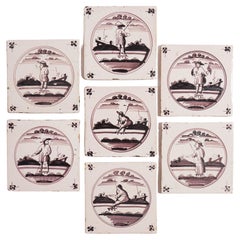 Set di 4 piastrelle Delft olandesi del XVII-XVIII secolo
