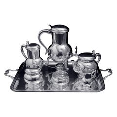 Uno splendido servizio di piatti d'argento antichi vittoriani assemblati, che comprende tre teiere o caffettiere e un grande vassoio da portata. Alla maniera di Tiffany & Co. Stati...