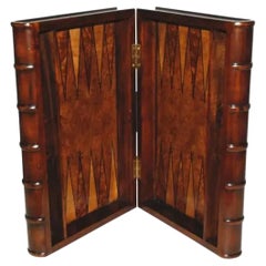 Set di scacchi da viaggio in miniatura, gioco fatto a mano e scacchiera in Pokerwork / Scatola, circa 1910