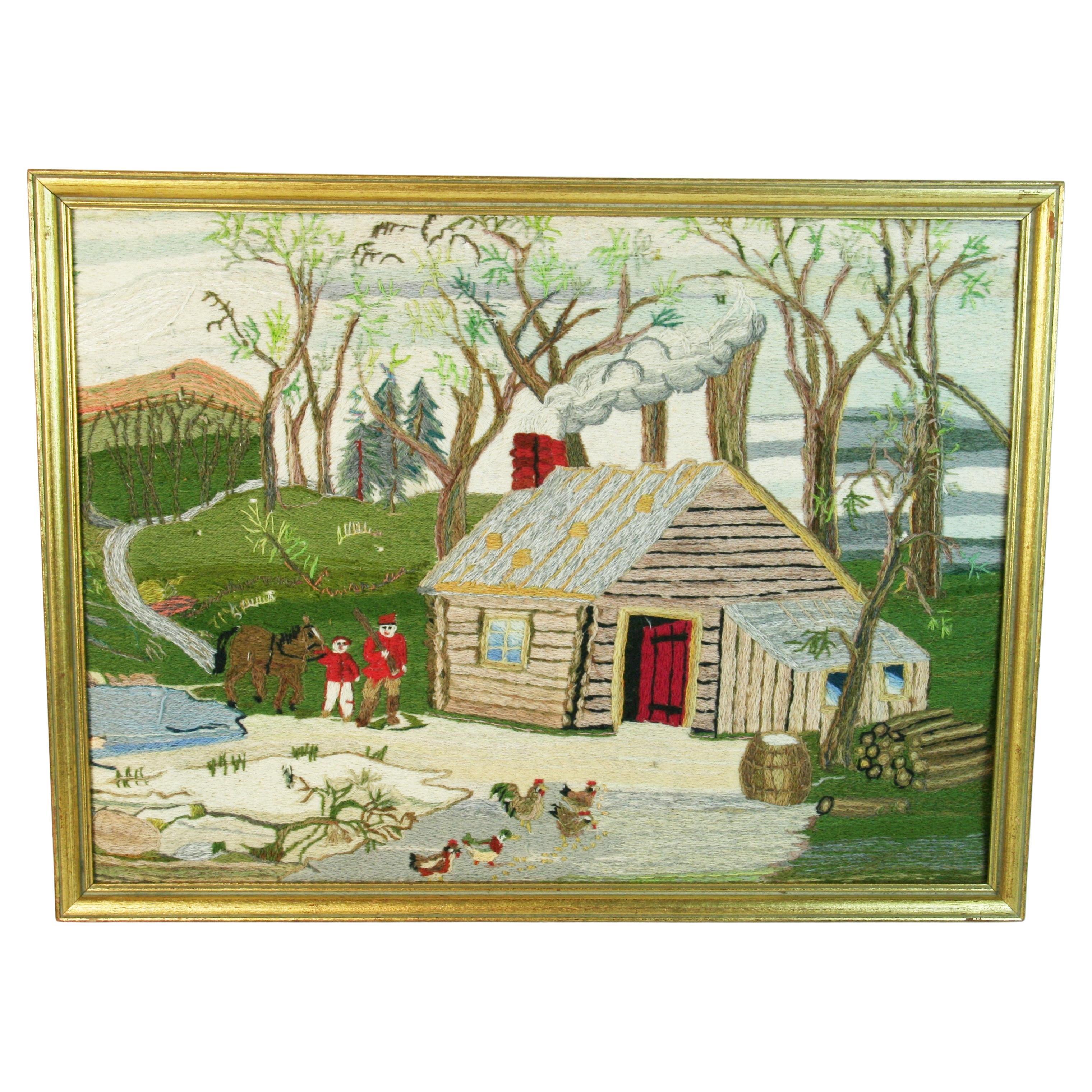 Appendiabiti da parete ricamato in stile Folk Art americano, una casa nel deserto, 1963