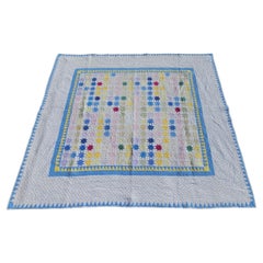 Trapunta da presepe montata del XIX secolo con oche volanti bianche e blu