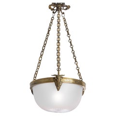Lampada a sospensione francese Art Nouveau in ottone e vetro satinato del 1920
