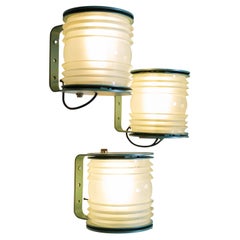 Lampade da parete francesi con ottone e vetro trasparente Holophane