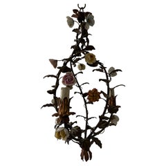 Lampadario floreale spagnolo Glamour Tole dipinto a mano Metallo , Spagna anni '70