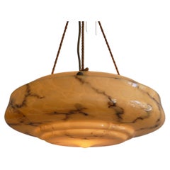 Plafoniera a sospensione in alabastro francese di proporzioni ordinate, 1920 circa. Alabastro di colore bianco sporco, di diametro più piccolo ma molto resistente per le sue dimensi...
