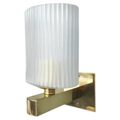 Sconcese italiane degli anni '50 in ottone curvato e vetro opalino