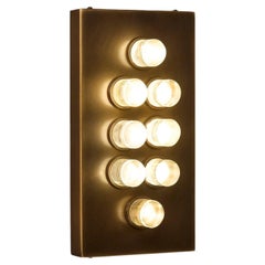 Coppia di applique italiane degli anni '50 caratterizzate da un design compatto ed equilibrato di metà secolo. Ogni apparecchio è composto da una piastra da parete rotonda in ottone ...