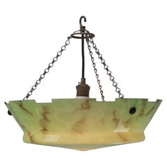 1920 Art Deco francese, lampada a sospensione in vetro verde con effetto marmo. Peso: 1,30 kg / 2,9 lb Prezzo per singolo articolo. Tutte le lampade sono state rese idonee dagli st...
