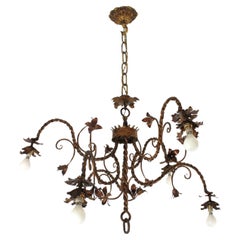 Plafoniera francese a bouquet floreale in ferro dorato, anni '40