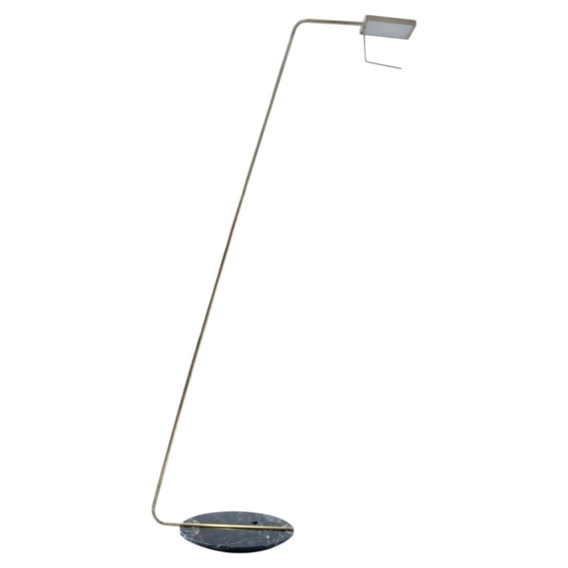 Questa lampada da terra nera presenta una finitura nero pianoforte abbinata a una solida base in granito nero, creando un'illuminazione elegante che unisce il design contemporaneo ai...