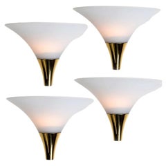 Applique da parete in ottone e vetro opalino dello Stilnovo del 1950