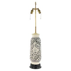 Lampada da tavolo singola di grandi dimensioni in porcellana traforata blanc de Chine degli anni '30 circa con base ebanizzata.