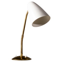 Lampada da tavolo modello 5066 disegnata da Paavo Tynell e prodotta da Taito Oy in Finlandia negli anni Cinquanta. La lampada presenta un supporto rotondo in ottone, una gamba in leg...