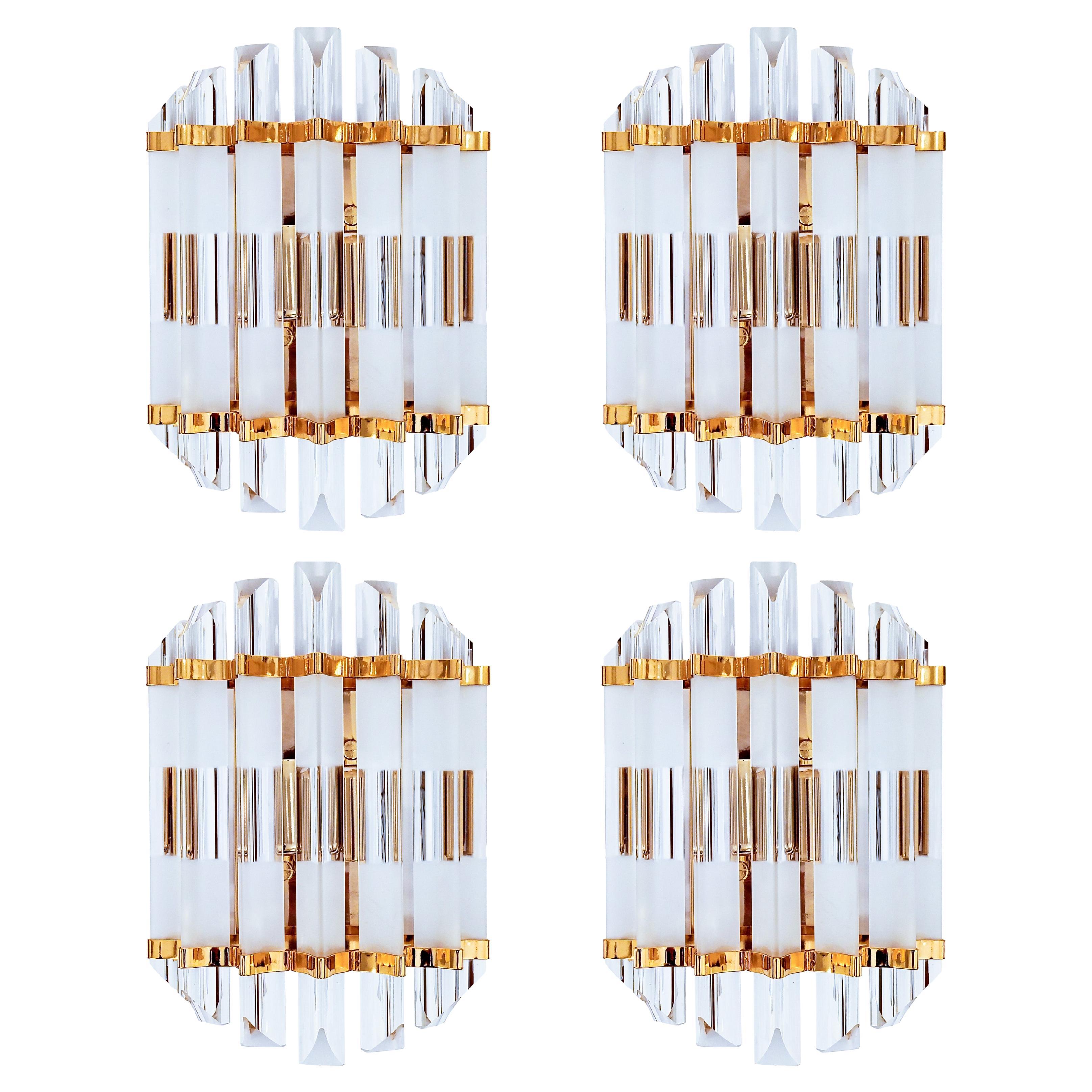 Applique Art Deco Revival di Luminaria S.A., Spagna, anni '70. Strutture in metallo cromato oro con motivi frontali in ottone massiccio in stile Art Deco. Diffusori in vetro opalino ...