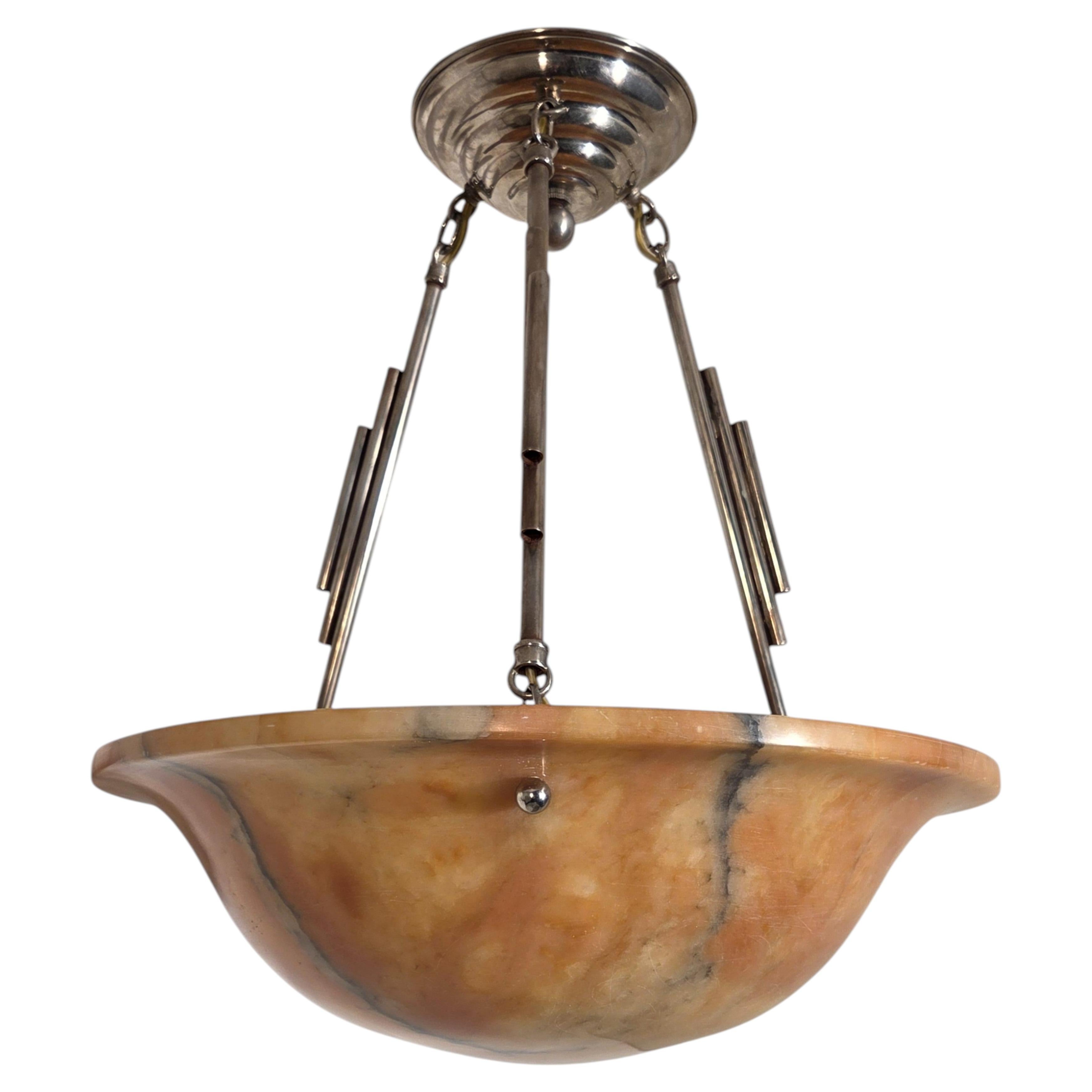 Una sorprendente e generosa lampada a sospensione in alabastro, che misura circa 19,75 pollici di diametro, realizzata durante il periodo Jugendstil europeo. Ricavato da un unico blo...
